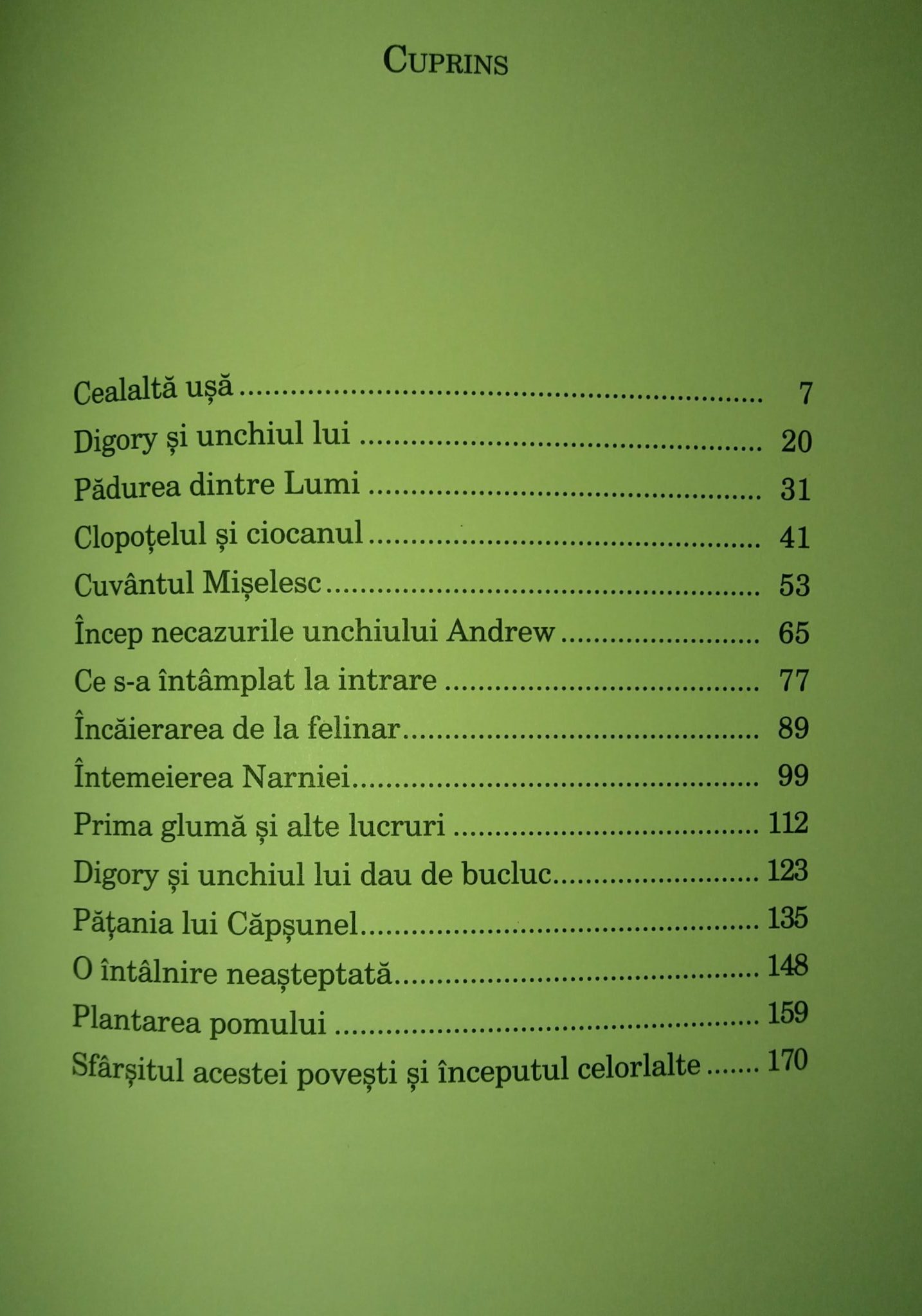 Digory Kirke și Polly Plummer nici nu ajung să se cunoască bine când, pe neașteptate, pornesc în cea mai spectaculoasă aventură a vieții lor. Obligați de unchiul Andrew să ia parte la experimentul lui magic, cei doi copii rătăcesc pe tărâmuri dintre cele mai stranii, stăpânite de forțe malefice însetate de putere. Dar când deznădejdea își face simțită prezența, cântecul miraculos al leului Aslan dă naștere unei noi lumi, Narnia, unde imposibilul devine posibil, iar bunătatea și iubirea sunt răsplătite însutit.